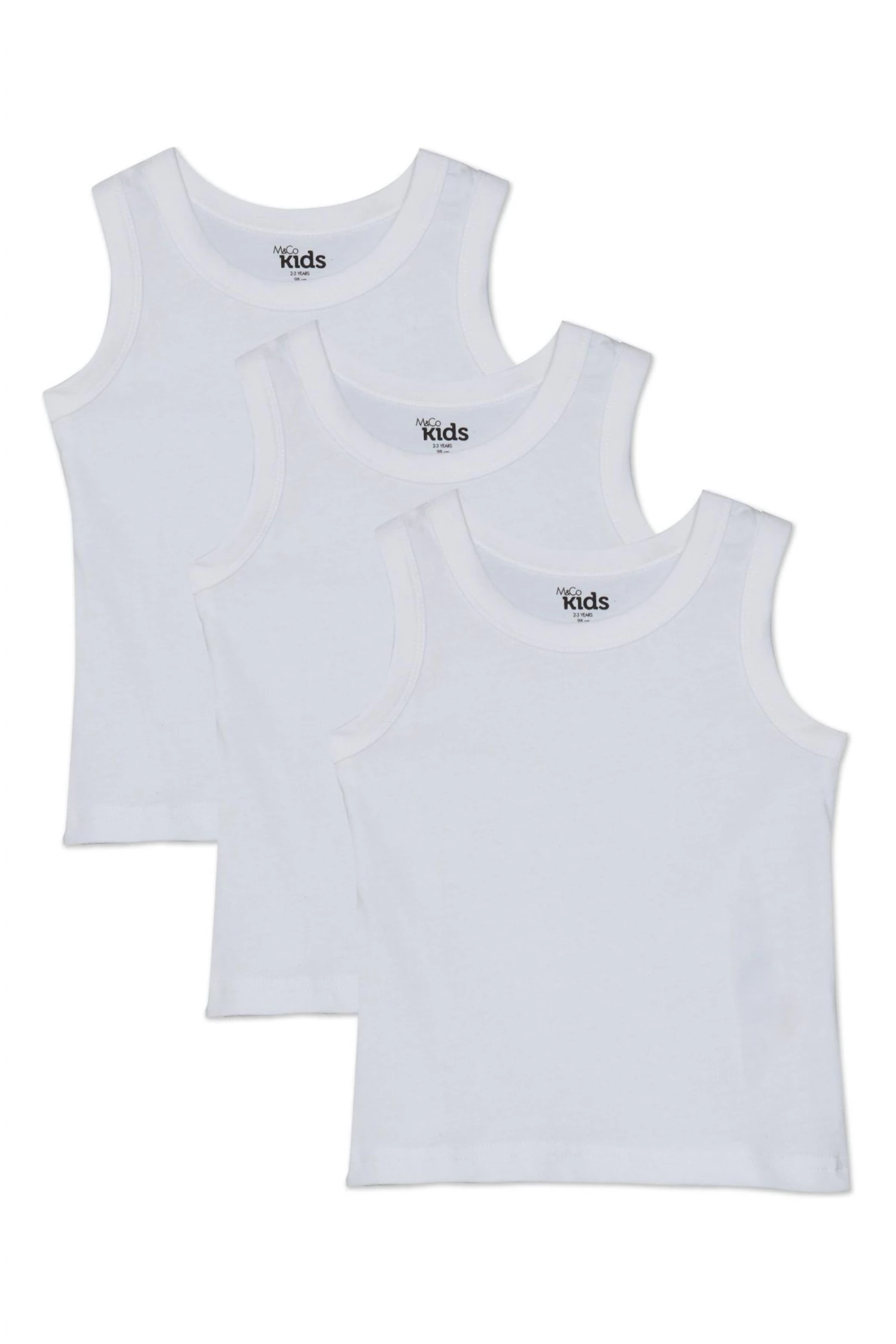 An everyday essential, this three pack of boys white vest tops have been created in a cotton rich fabric.