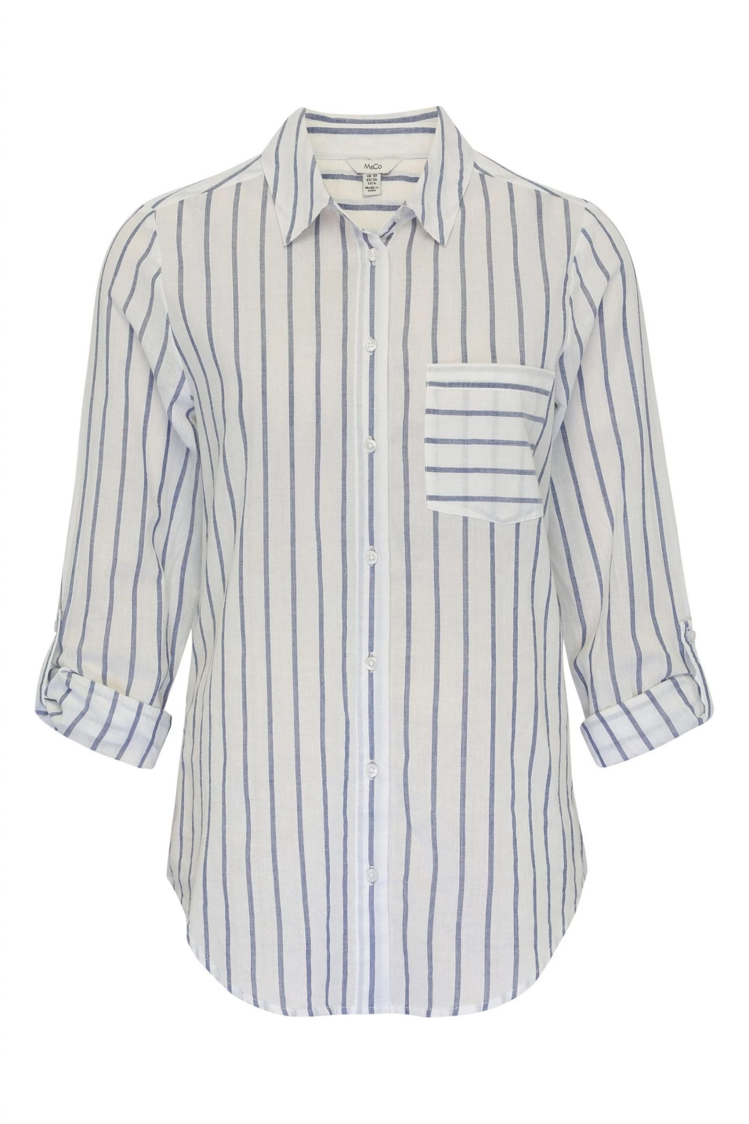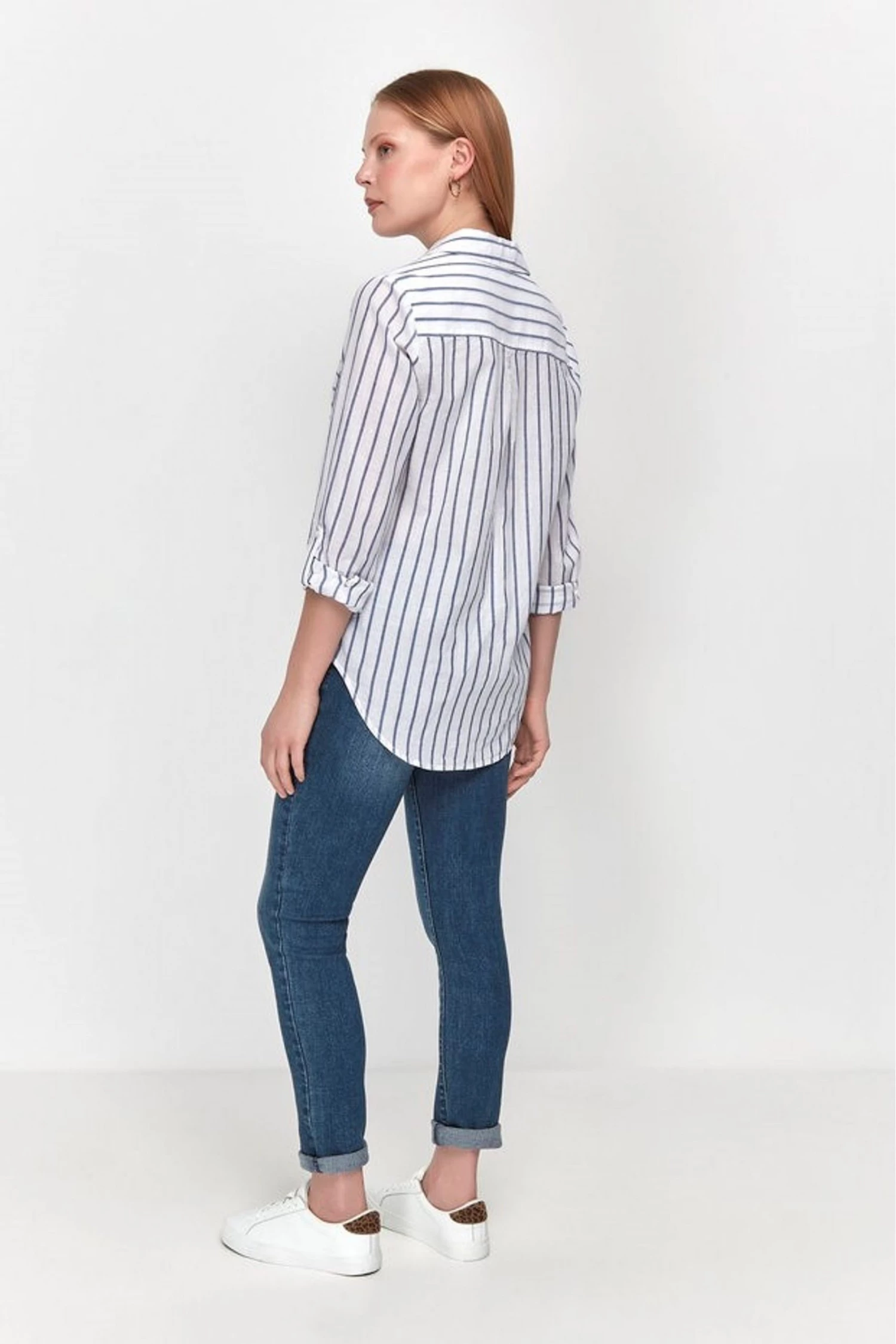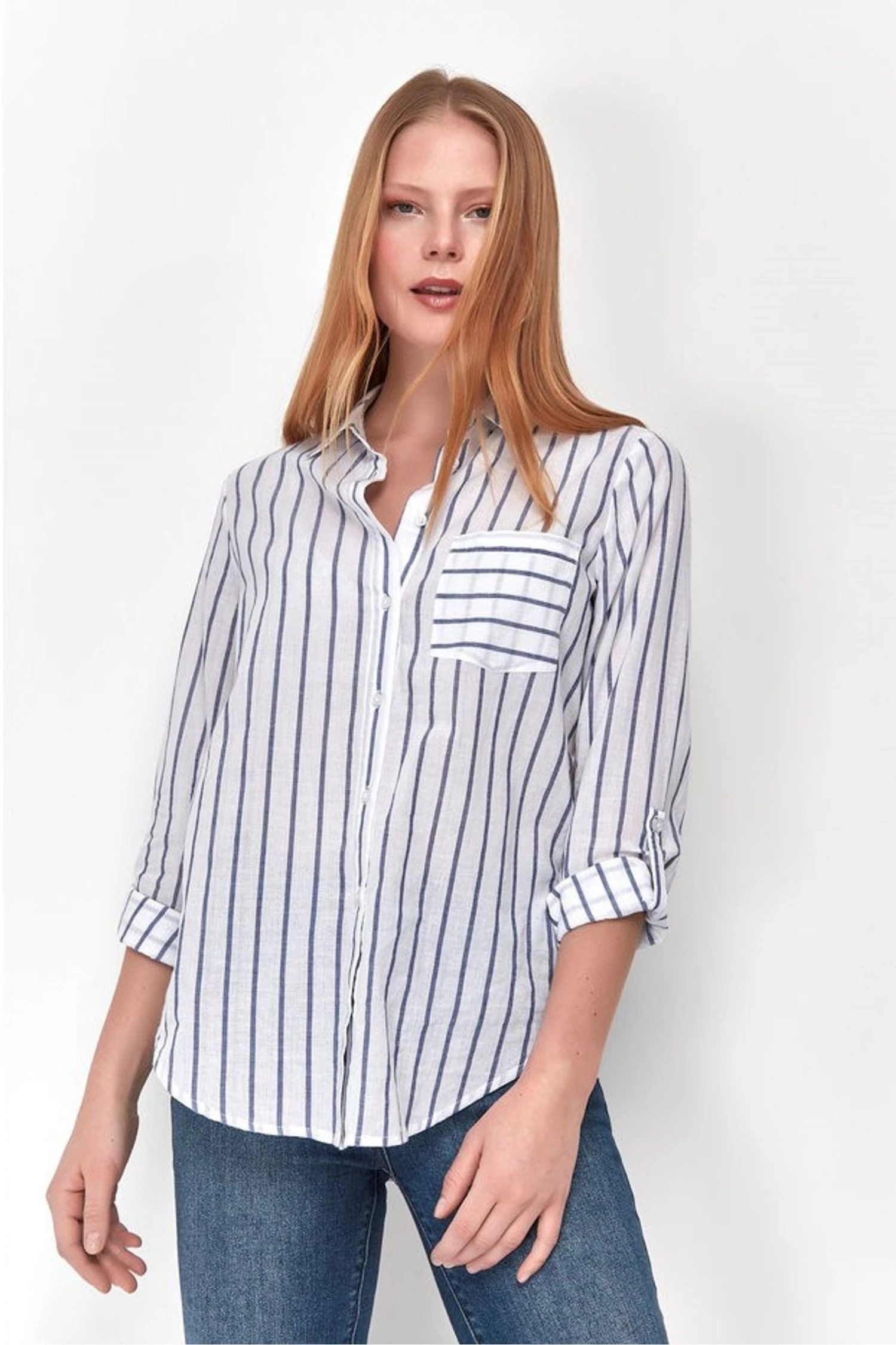 This shirt features three quarter length rolled sleeves, a classic collar, button down front, chest pockets and a wide stripe design. Pair with denims and boots for a casual look.