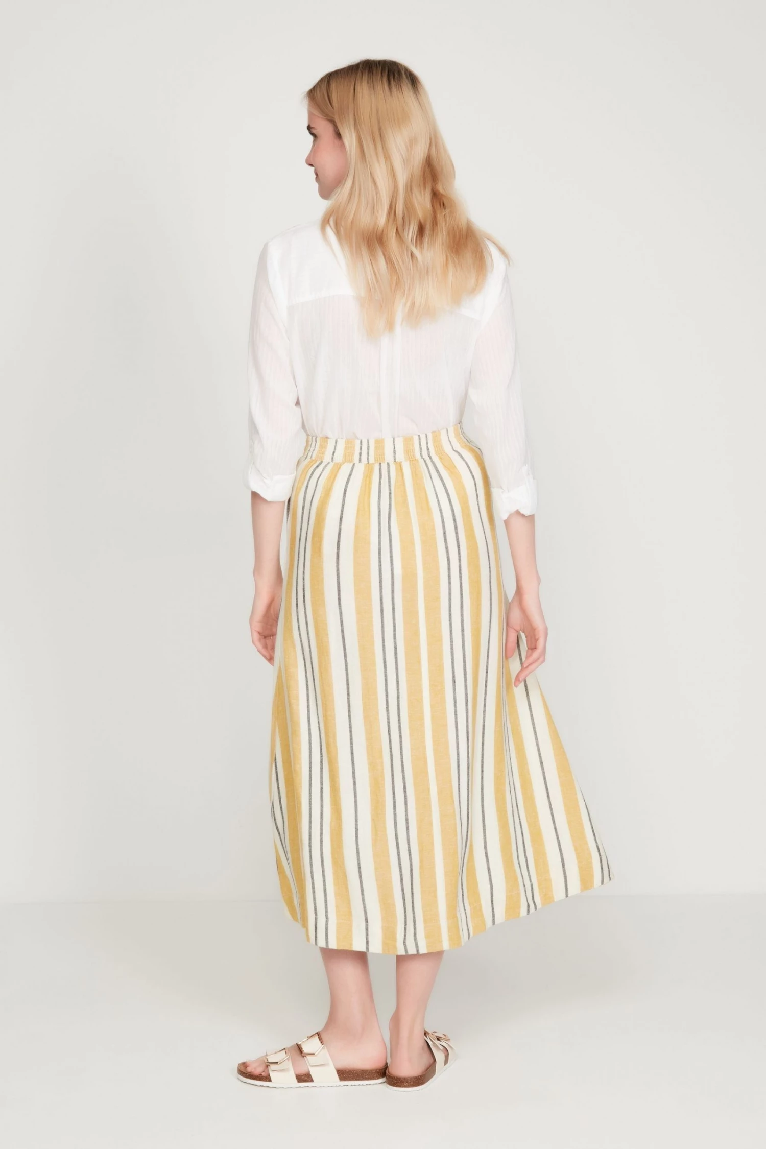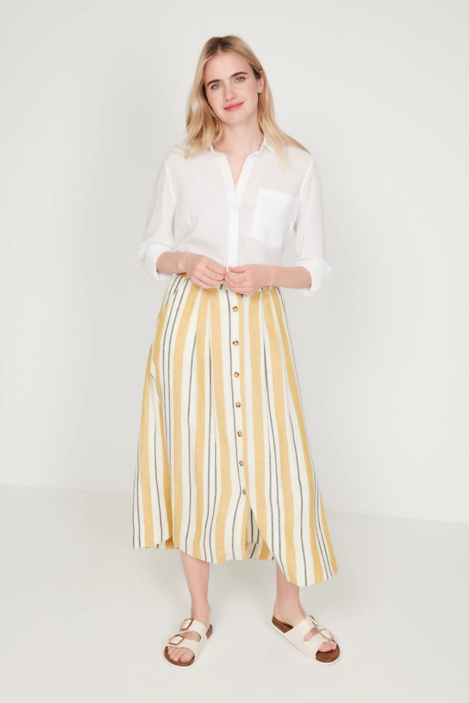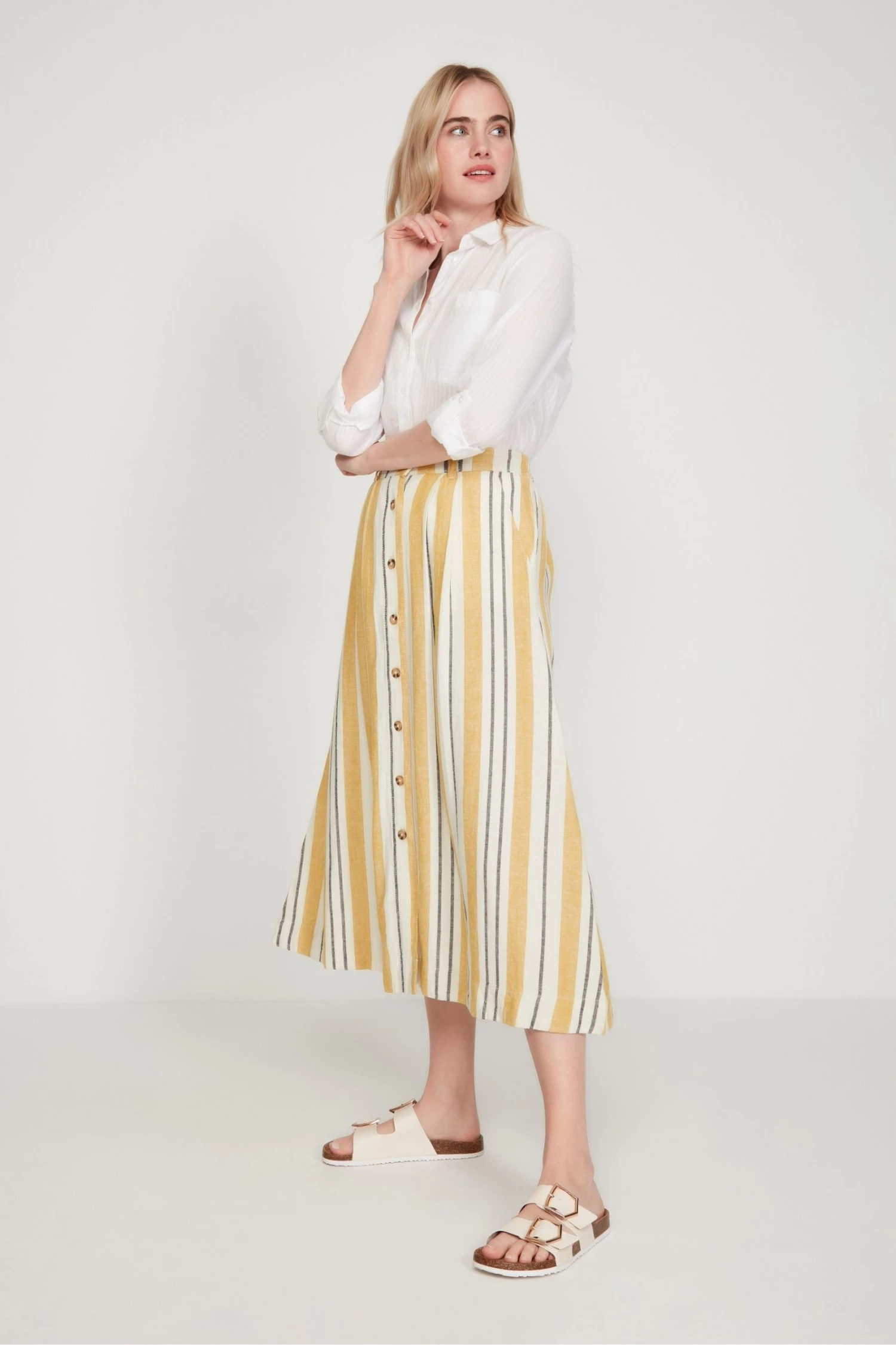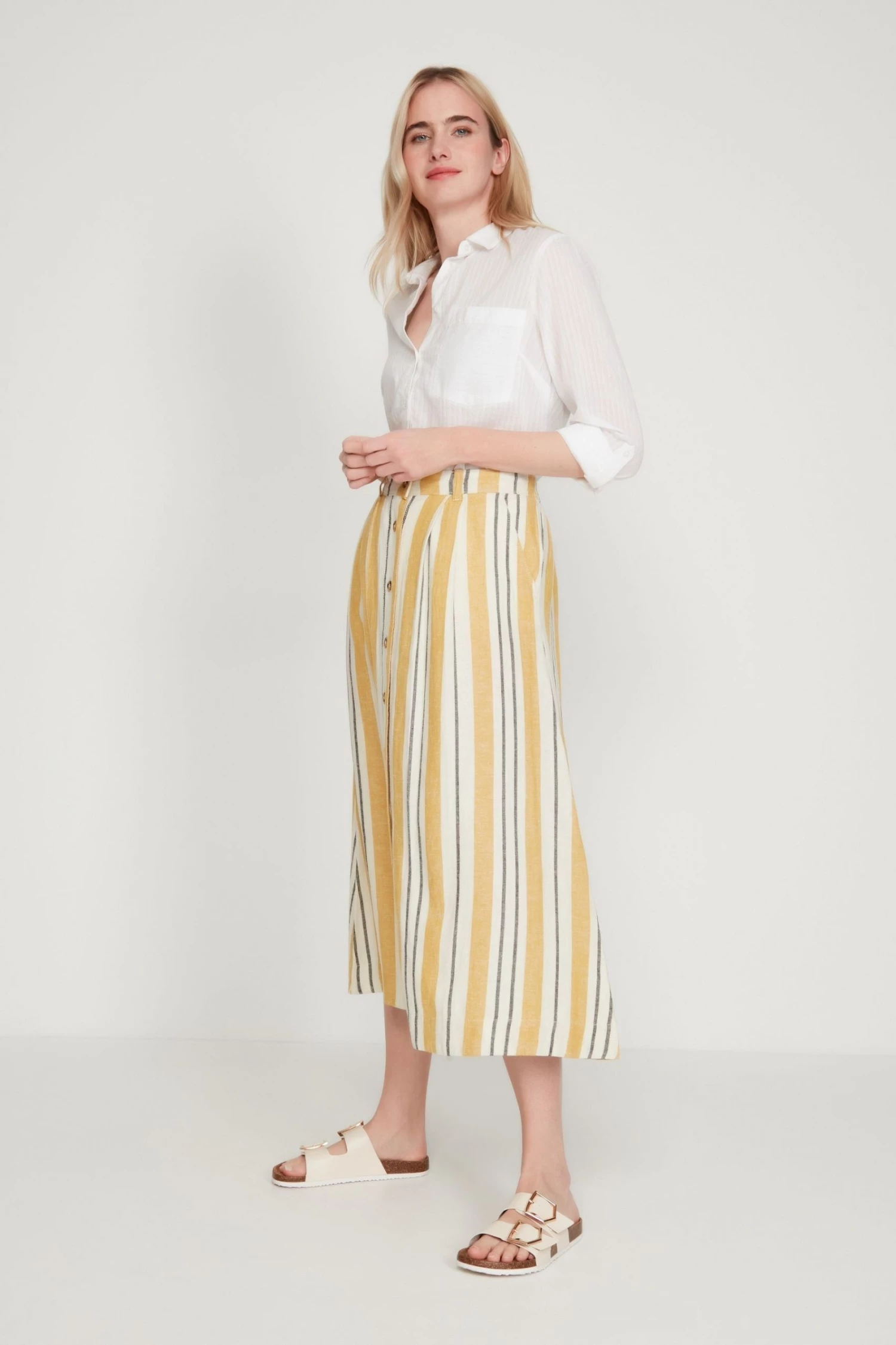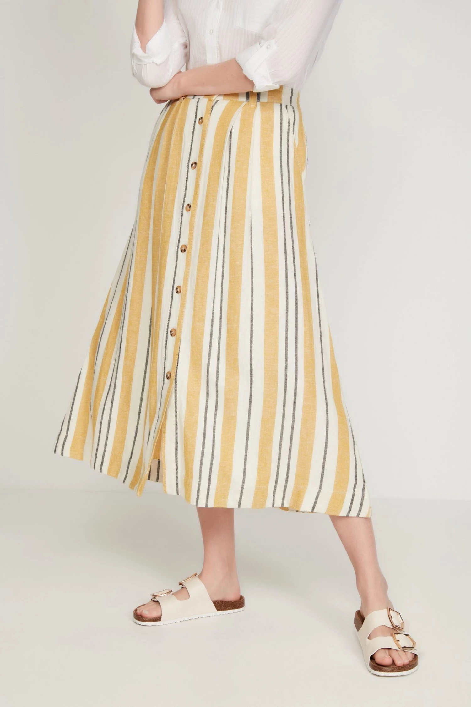 M&Co Yellow Button-Through Linen Skirt